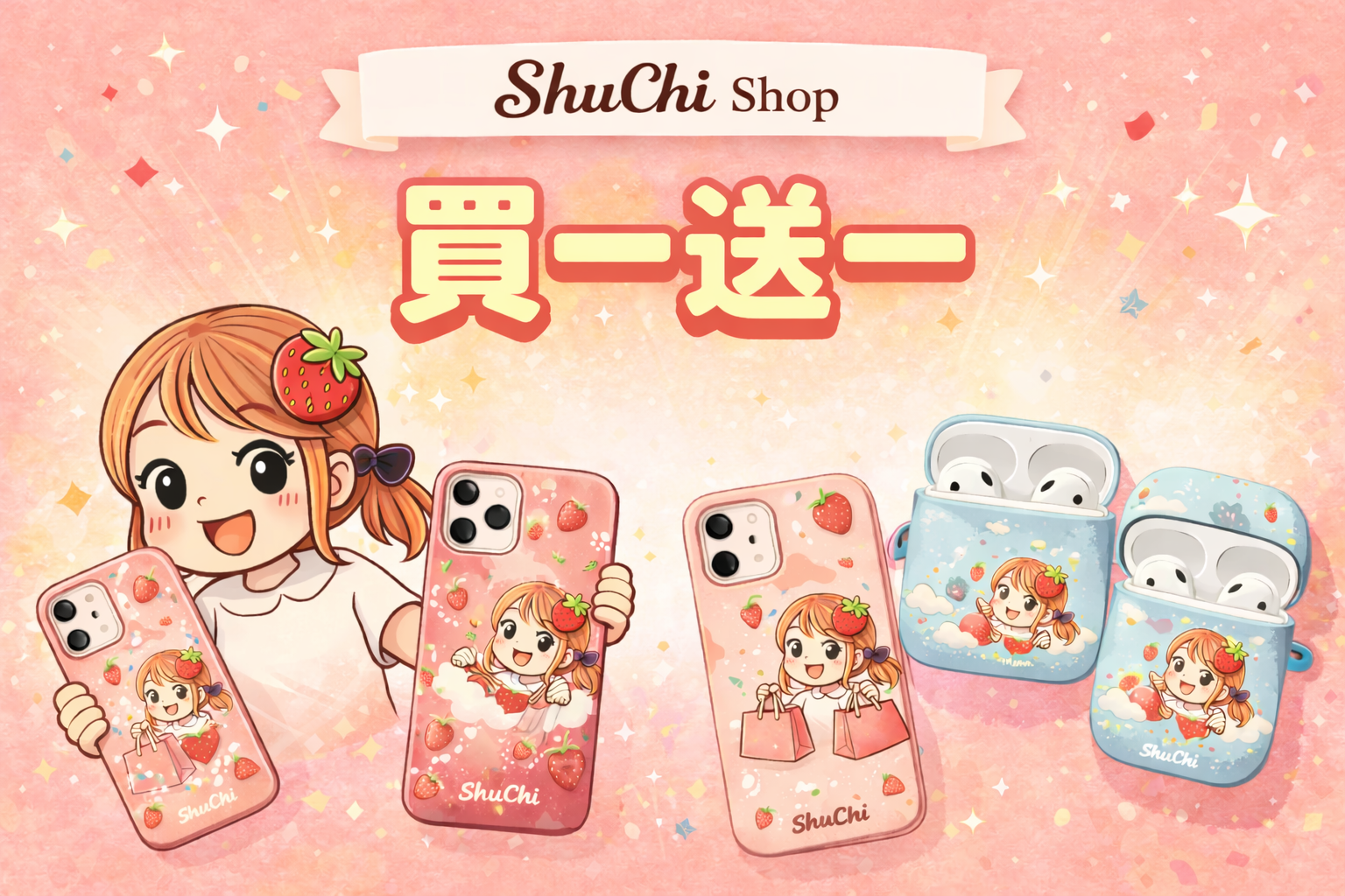 🎯 黃粉星星女孩手機殼🌟💛💖