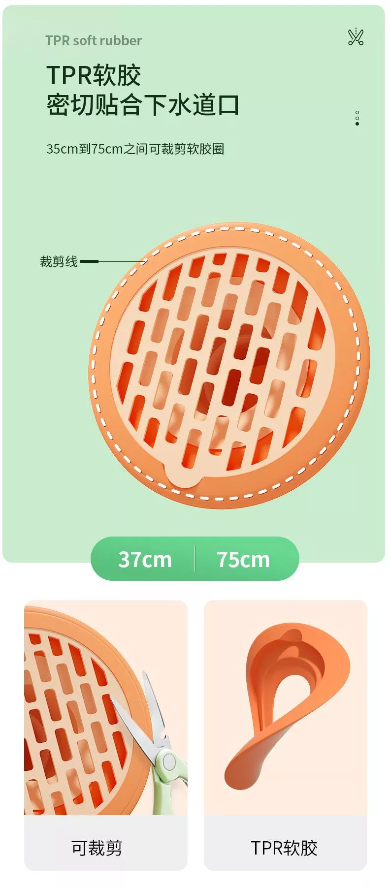 🧲 貼合不漏味:✂️軟膠圈可裁剪,緊密貼合下水口。