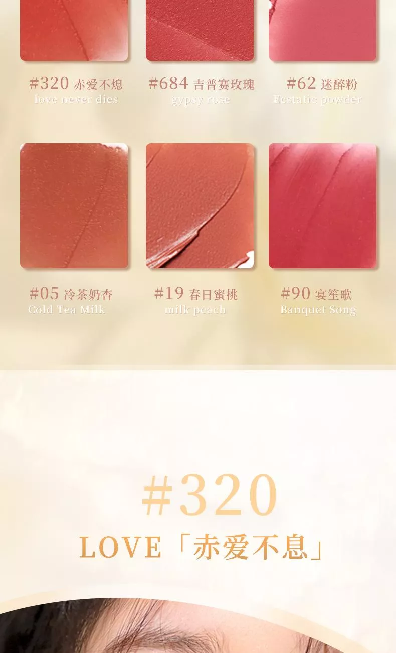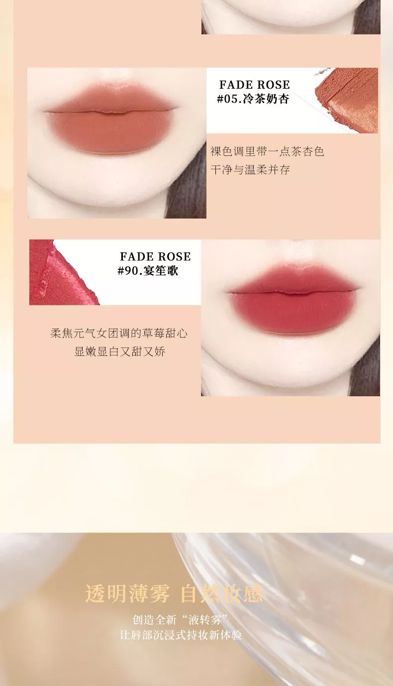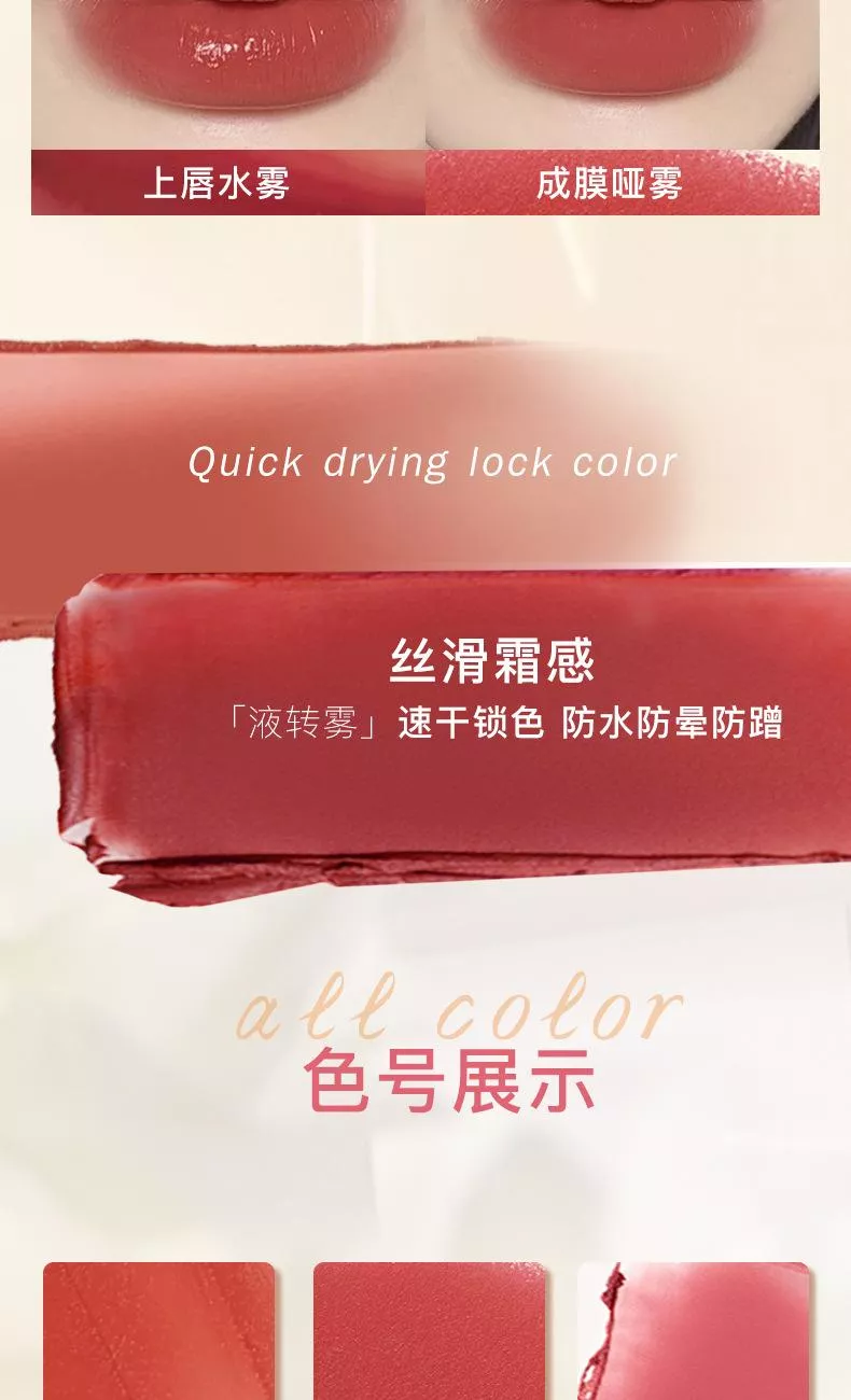 上唇水潤輕盈,成膜後轉為柔霧質感