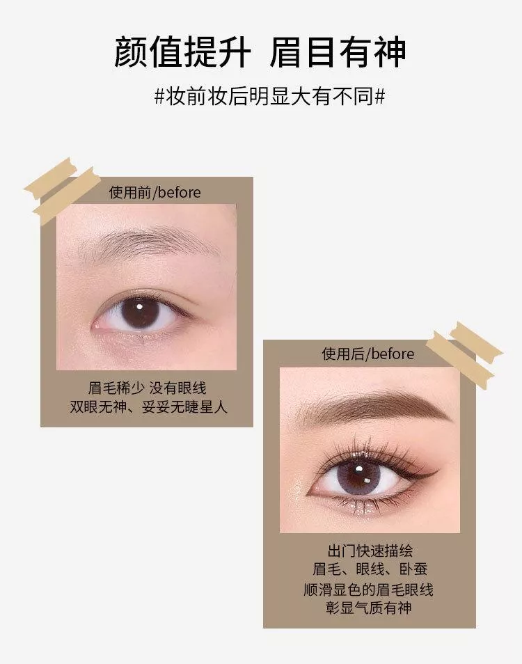 ✔ 三合一功能筆:一筆搞定眉毛、臥蠶、睫毛