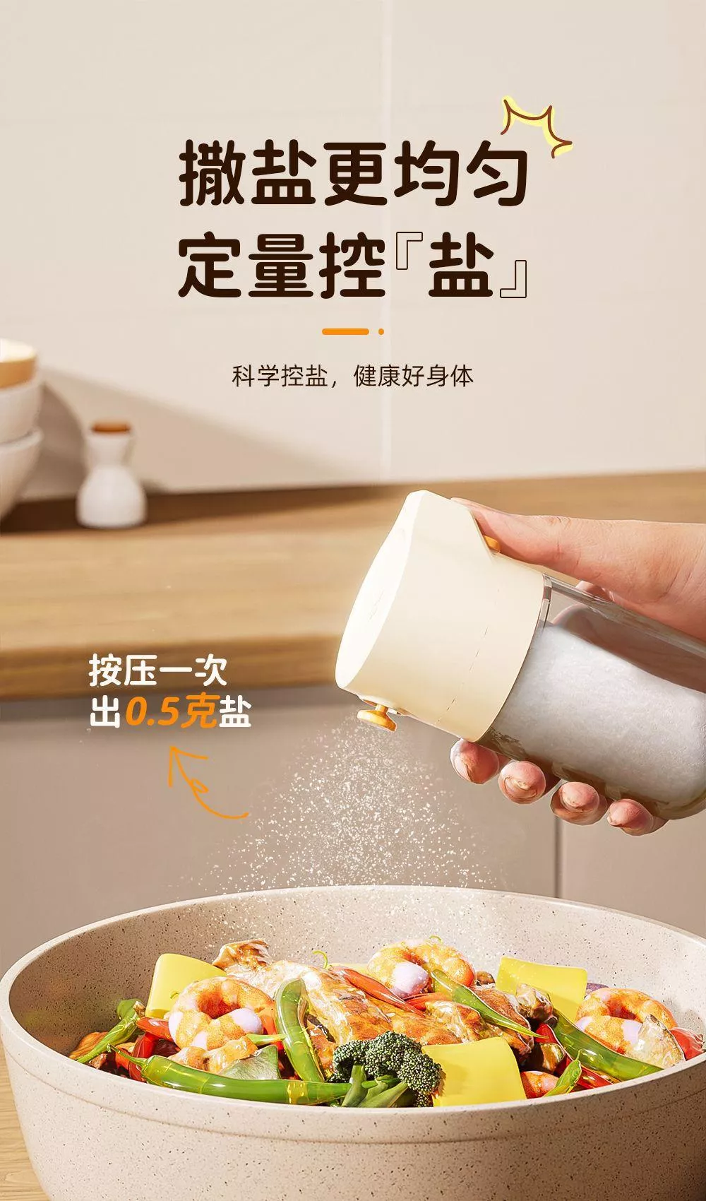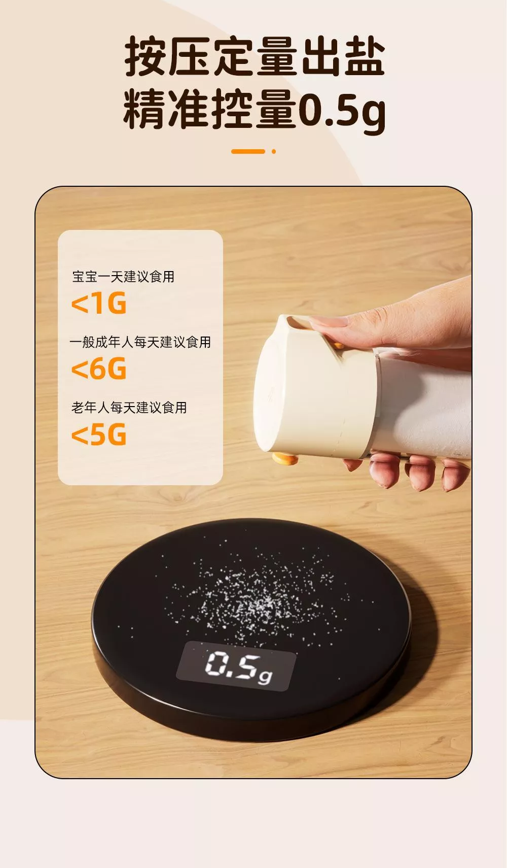 ✔️ 每次按壓出鹽0.5g,科學控鹽超方便