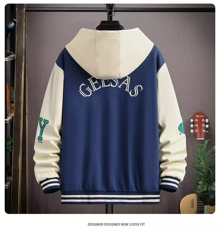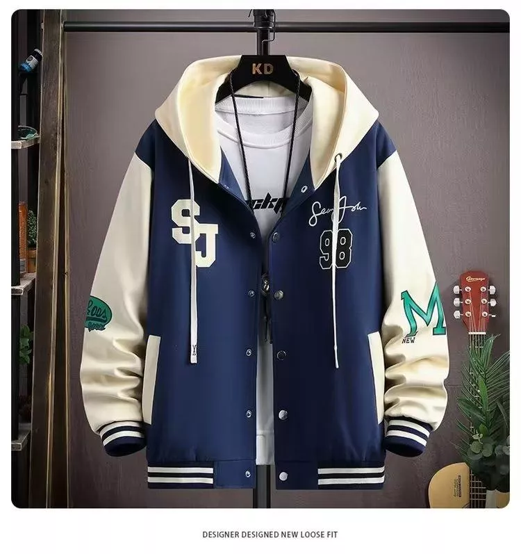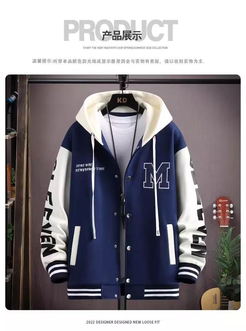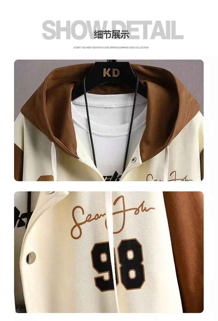 ✔️ 連帽設計+棒球服元素,休閒又有型