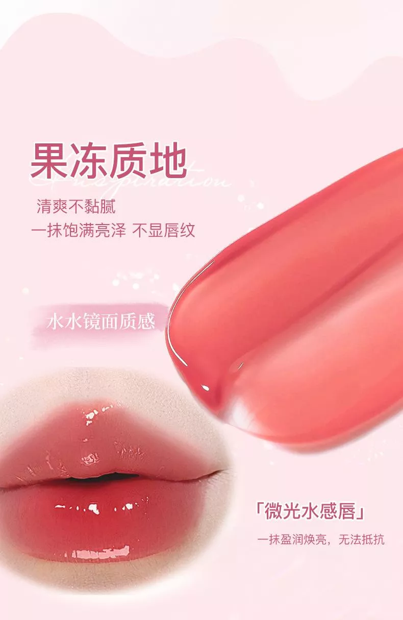 果凍質地不卡唇紋,水感爆棚不厚重~