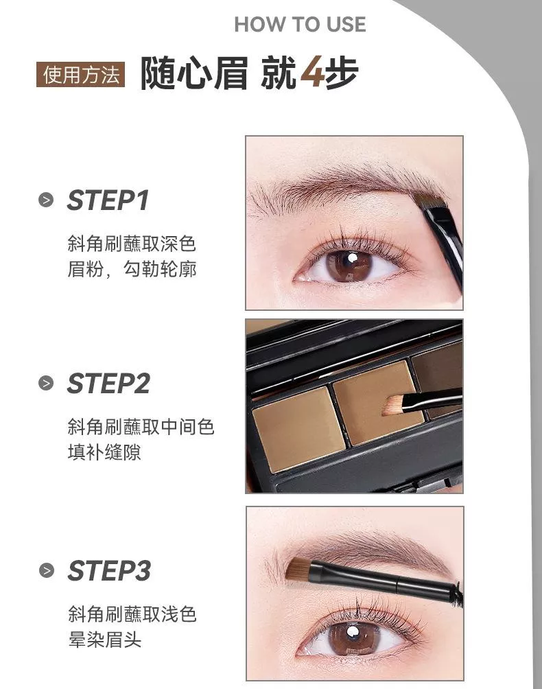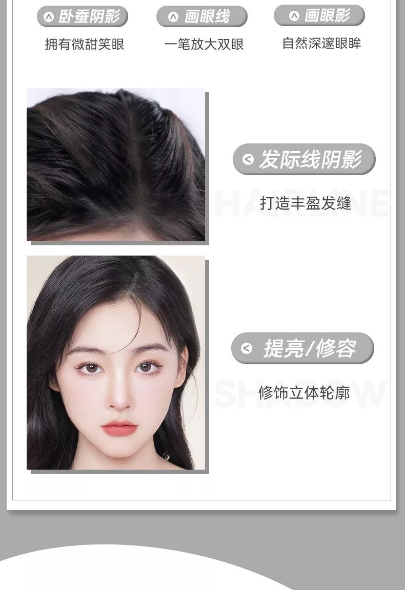 ✔️ 一盤多用:眉粉、眼影、修容、提亮、鼻影、臥蠶、髮際線通通搞定!