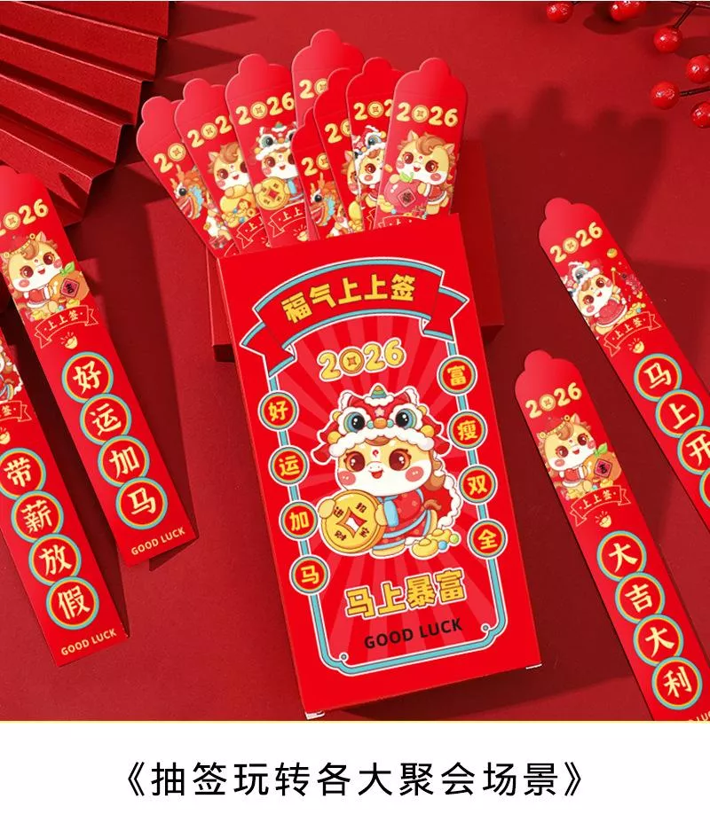 創新互動設計: 獨特長條抽籤式造型,鼓勵親友「搖一搖、抽一抽」,將單純的紅包饋贈升級為歡樂的聚會遊戲!🎉