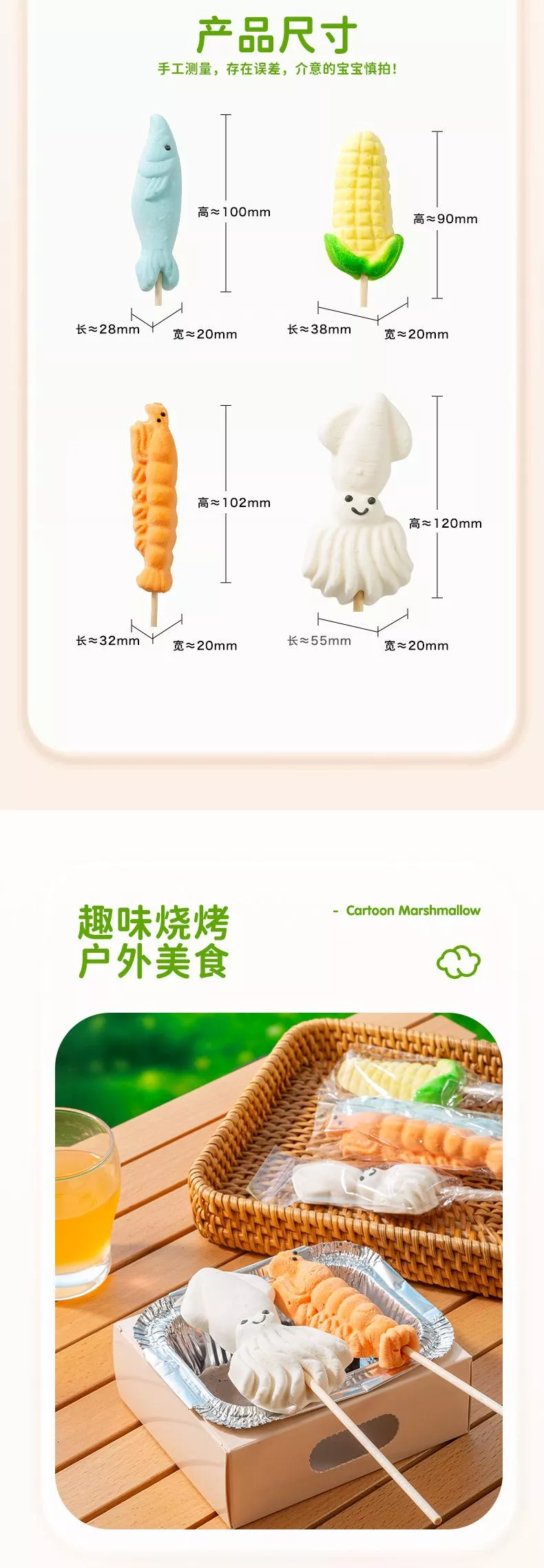 ✔️ 4種造型:魚🐟、玉米🌽、大蝦🦐、魷魚🦑