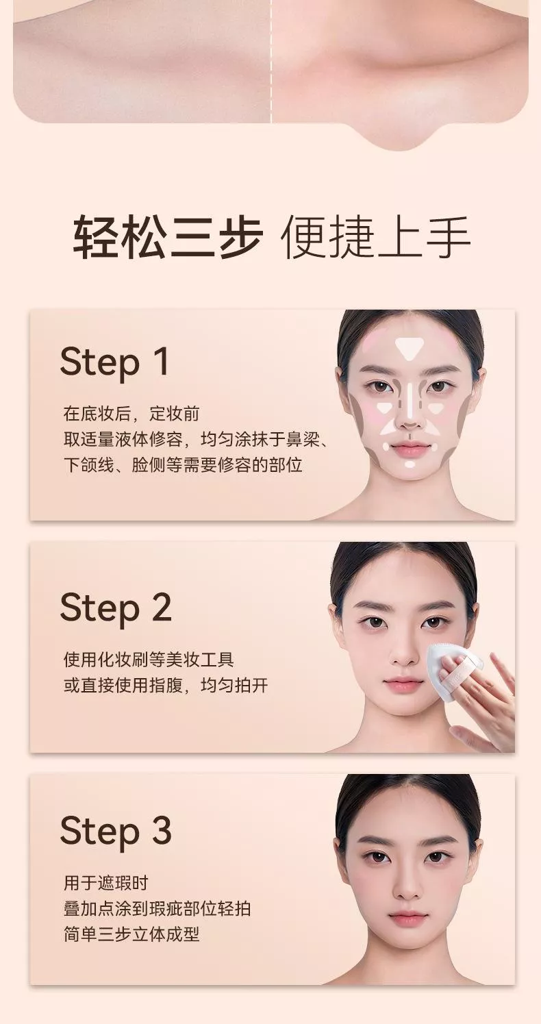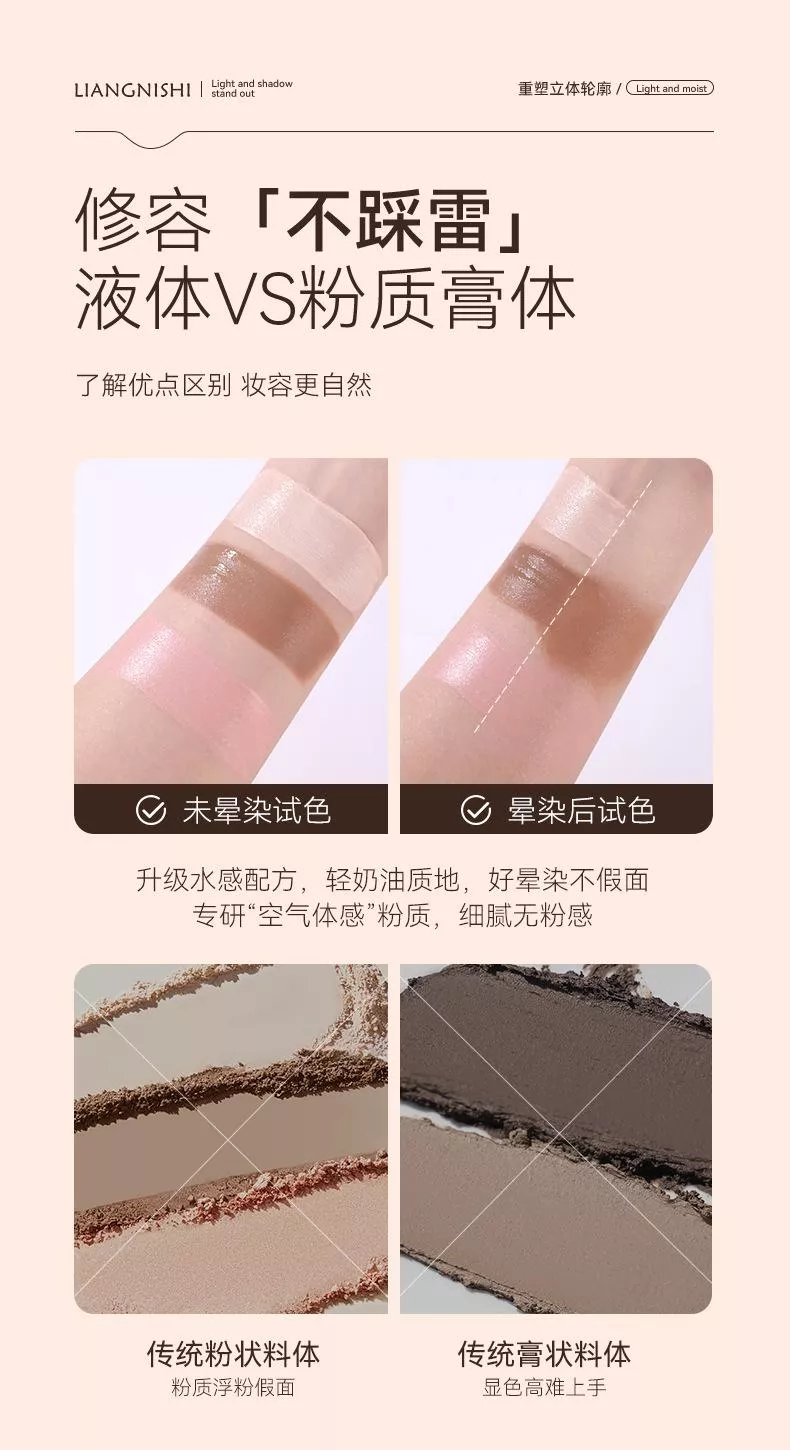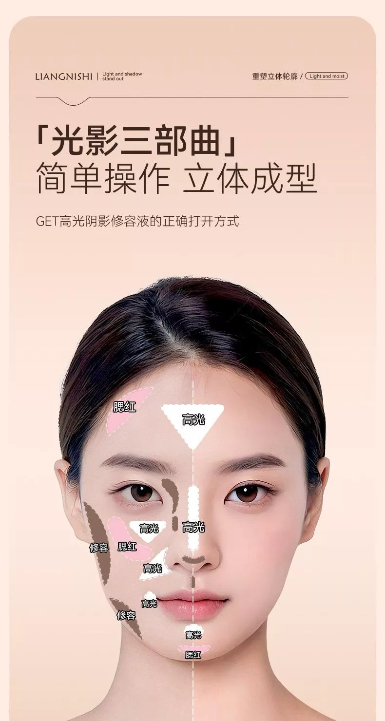 ✔️ 高光+陰影+腮紅,三色修容一次搞定!