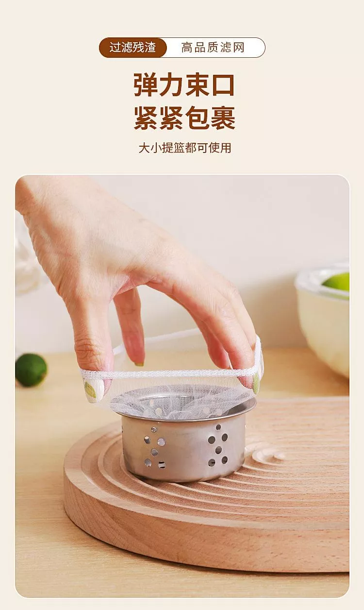 ✔️ 彈力束口包覆緊密,大小濾網通用