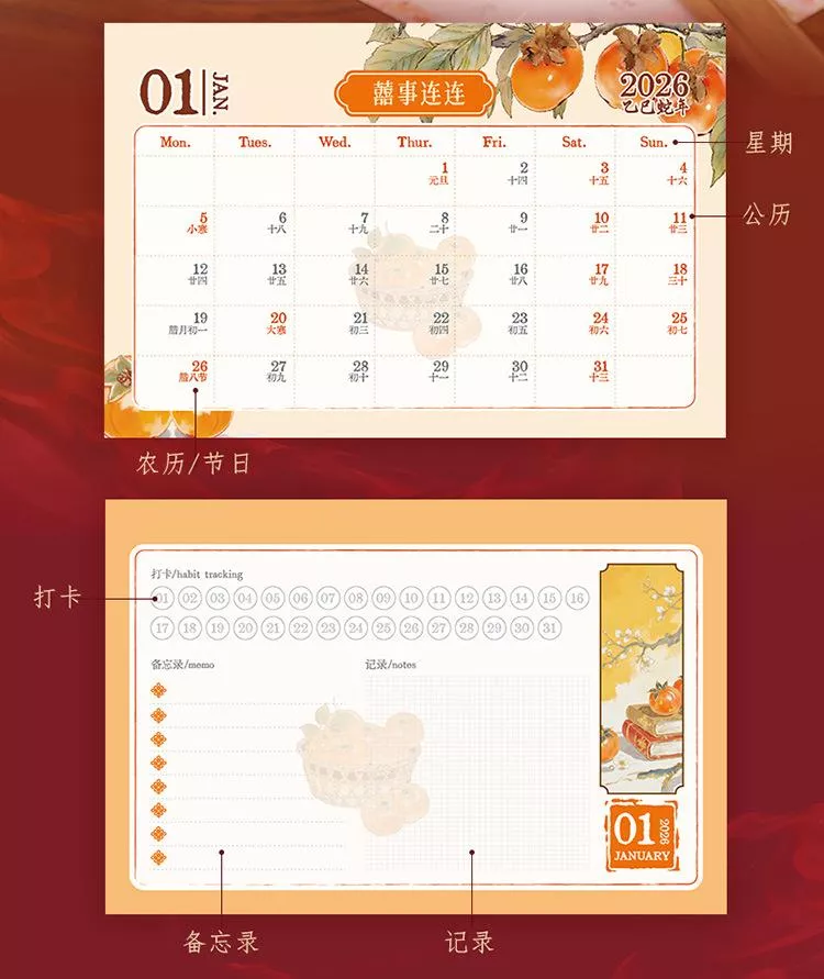 ✔️ 每月月曆+農曆+節氣提醒(掌握重要日子)