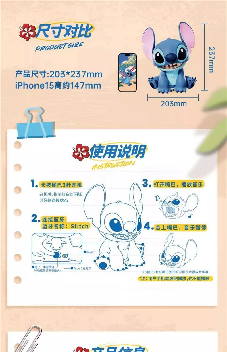 ✔️ 史迪仔會隨著音樂搖擺嘴巴,超有趣!