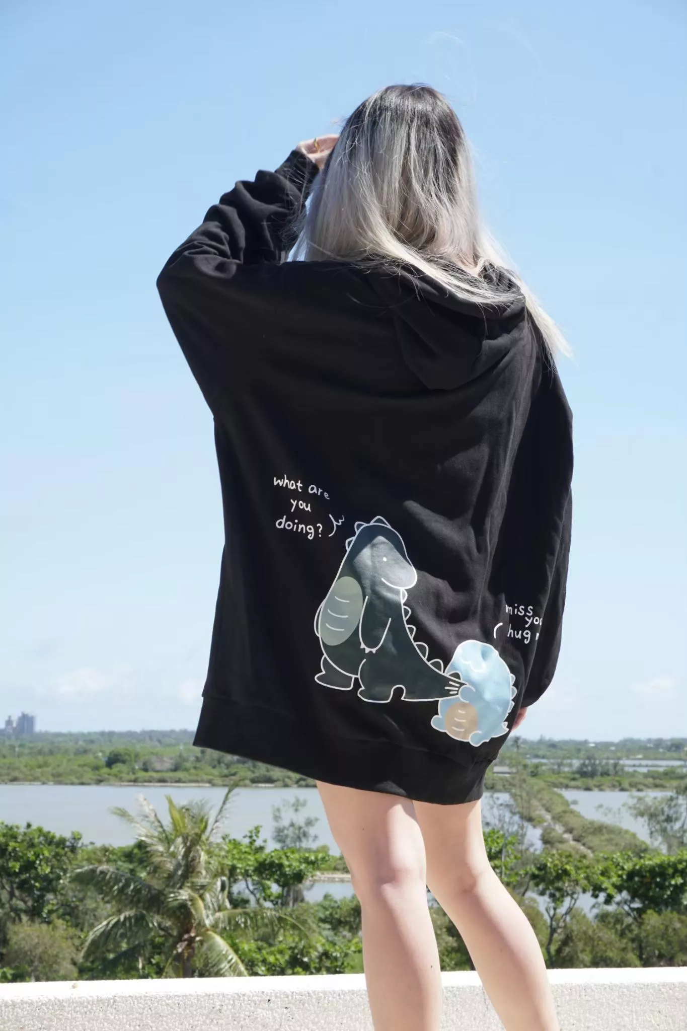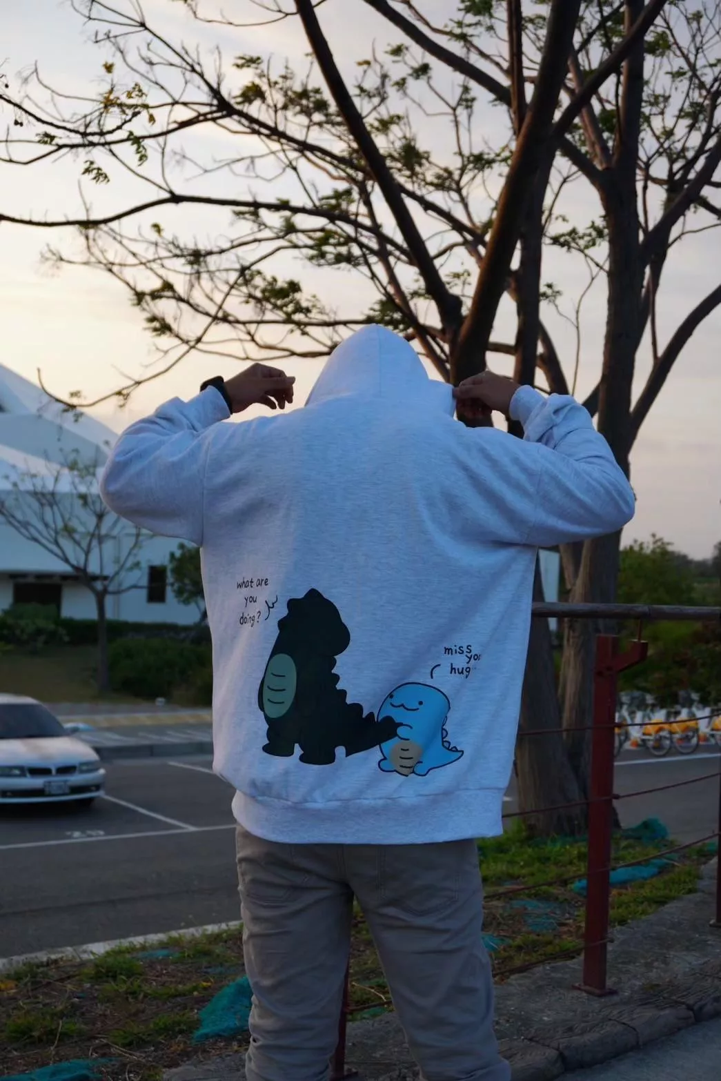 這款2025新款恐龍衛衣以「Miss You, Hug Me」為靈感💬,可愛又有溫度💕,背後恐龍抱抱插畫設計,低調卻充滿故事感~
