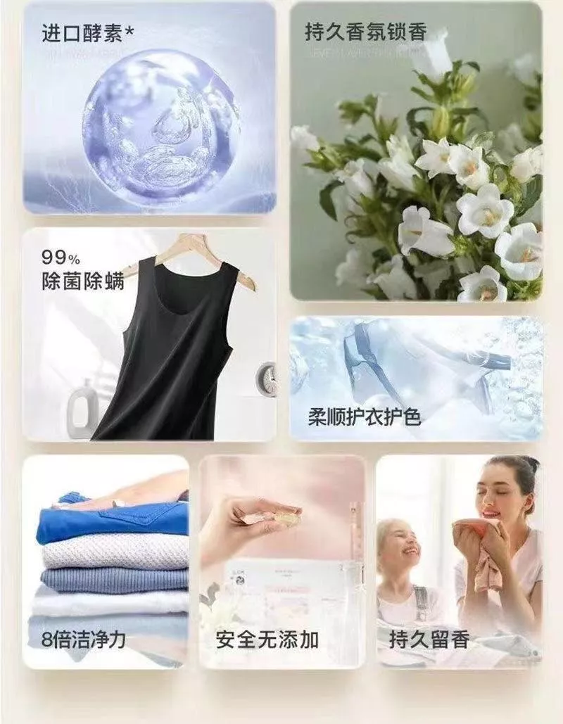 ✔ 3合1效能:強力去污+柔順護衣+持久留香
