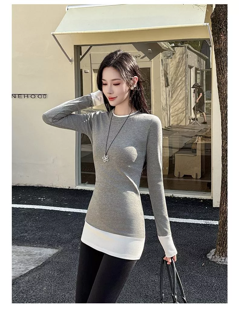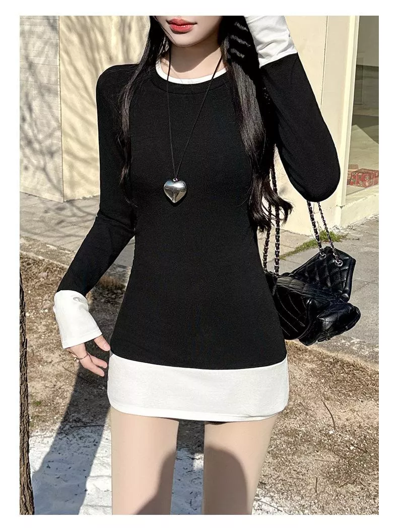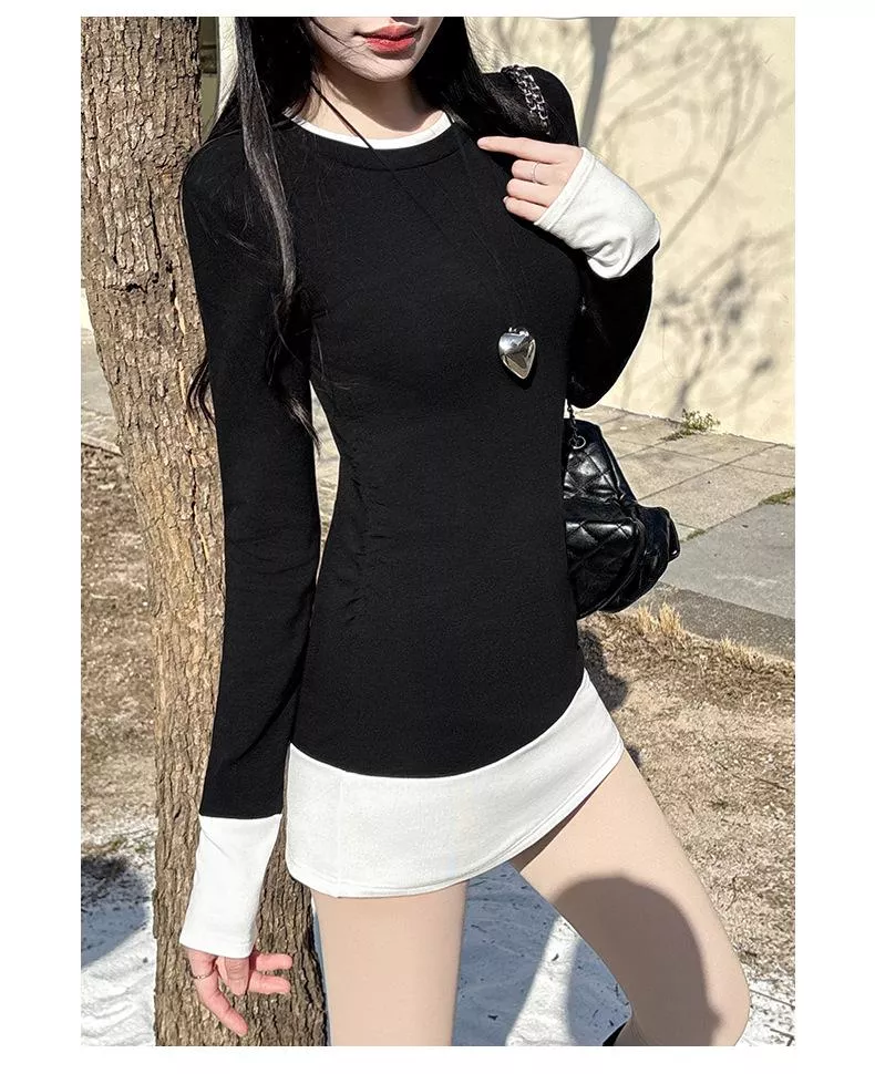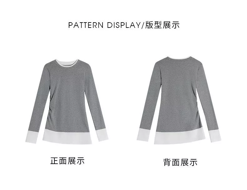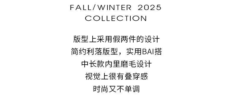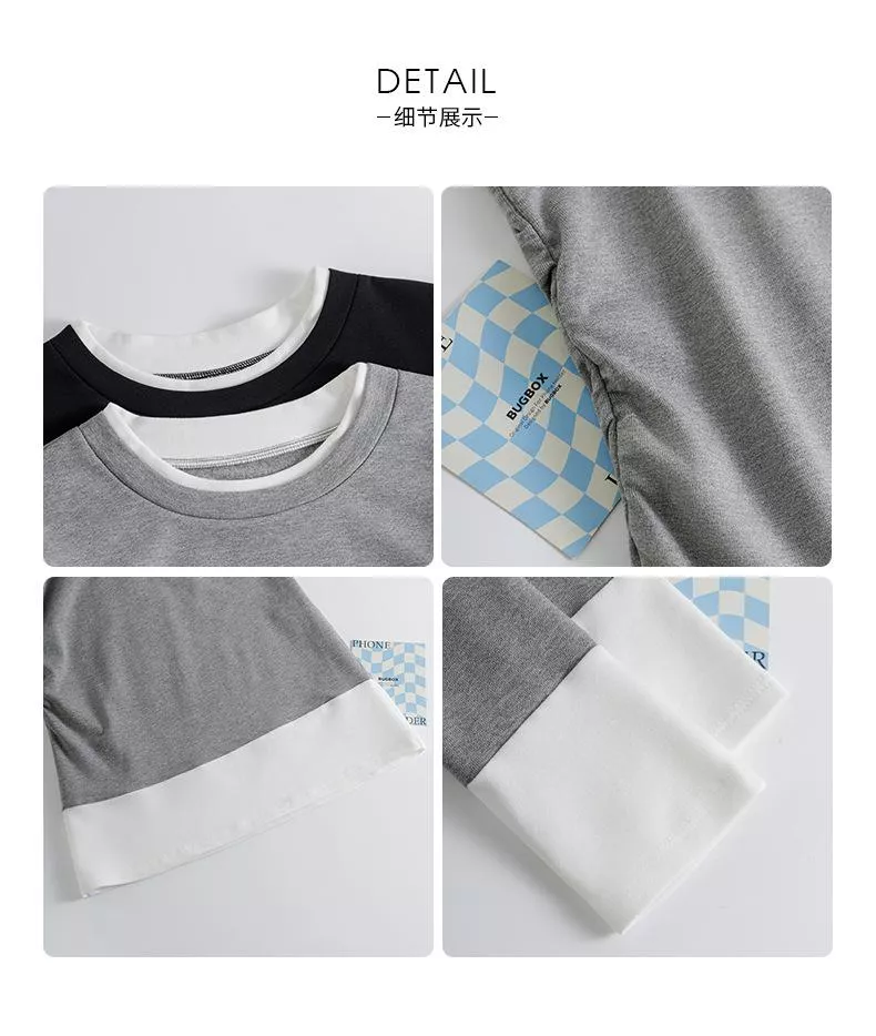 版型採用假兩件設計,領口、袖口和下擺的撞色拼接 既簡約又俐落。
